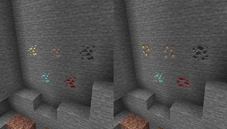 - Changed the textures of all ores without unique textures except for diamond ore to have different shapes for accessibility.