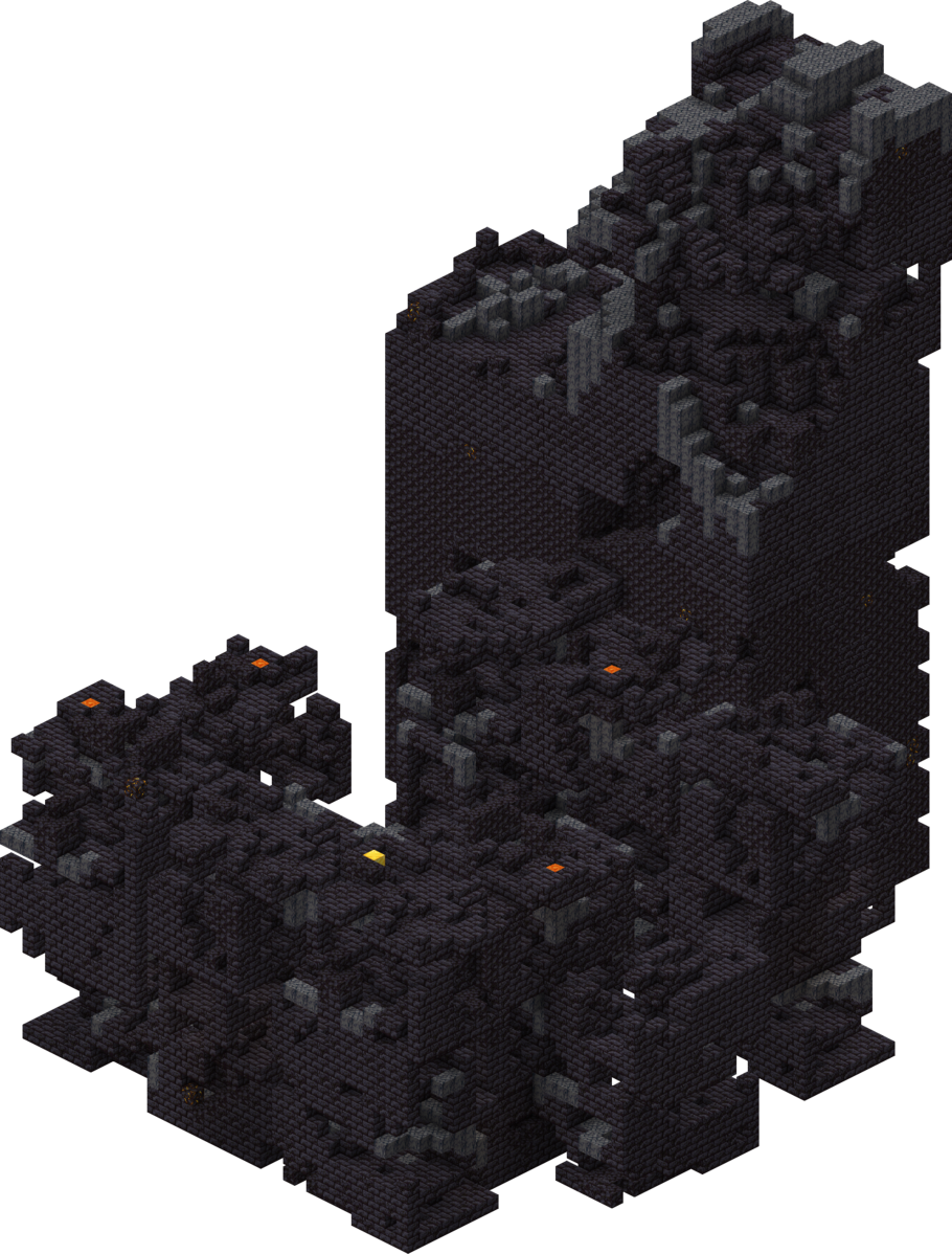Bastion remnants generate as four types of structures: bridges, hoglin stables, housing units, and treasure rooms. Each type has its own set of structures that compose it. These structures may be supported by ramparts that contain cave-like paths. Piglins, Piglin Brutes and Hoglins spawn frequently throughout.