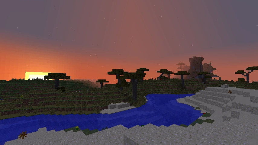This biome features dull, dry grass, and acacia trees. NPC villages can spawn naturally here, along with horses. It never rains in this biome, and it often neighbors deserts or mesas. Llamas will also spawn here.