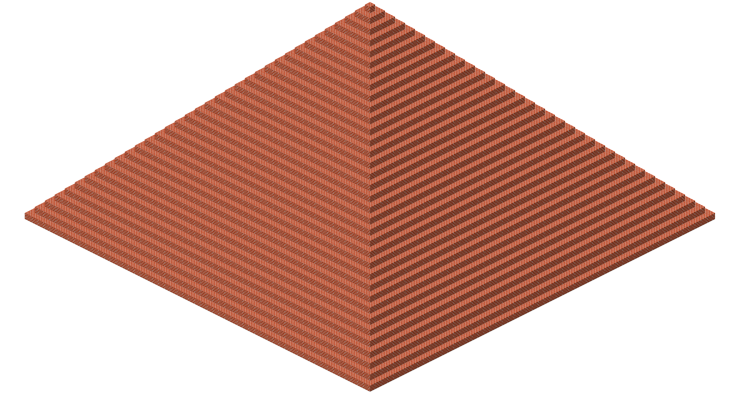The brick pyramid was a structure present in the earliest Infdev development phase of Minecraft. It was an extremely rare pyramid that spawned far away from a player's spawn point, stretching from nearly the maximum upper limit of the world down to ground-level. There was nothing inside it, so it was mostly useless. It was later deleted and replaced with the current structures. It lasted from February 27, 2010 to March 27, 2010, exactly one month. At the time, it was the only way to get brick blocks.