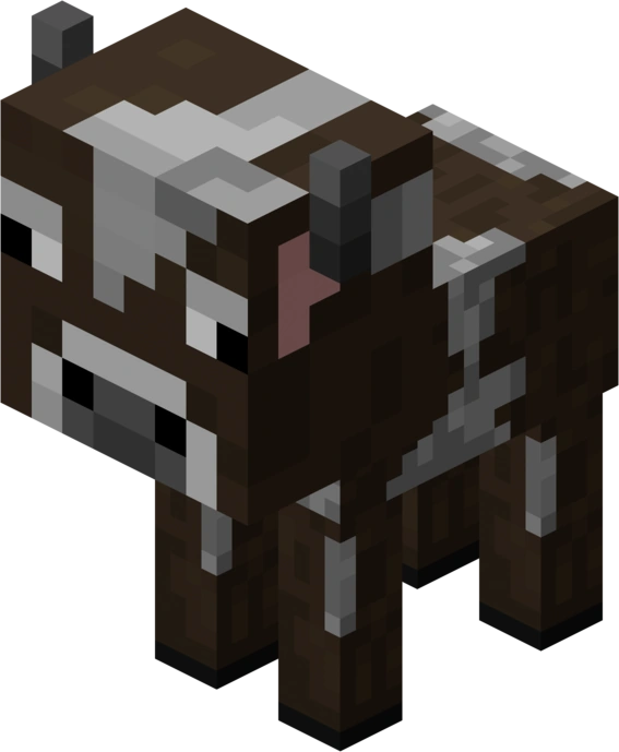 Cows are passive mobs in Minecraft. They provide leather, beef, and milk.
