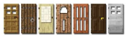 Since update 1.8, doors now come in all wood varieties. Each variety of door functions the same, but they each have their own unique style, color and texture.