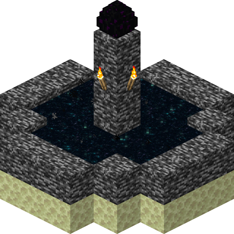 The Exit Portal (also known as the End Fountain) is a structure that enables the player to return to the Overworld, activated upon the defeat of the Ender Dragon.