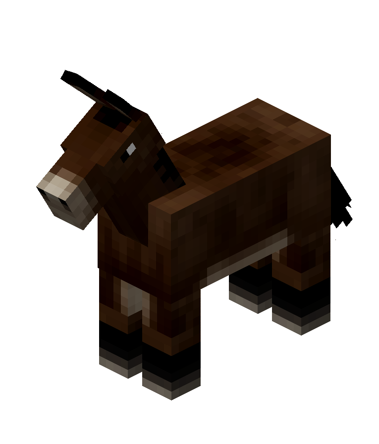 Mules are passive mobs that were introduced to Minecraft in Update 1.6. In survival mode, they cannot be found naturally. They can only be obtained through the breeding of a horse and a donkey.