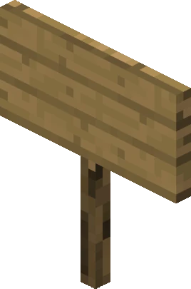 A sign is a thin, non-solid block that can display text. It can be crafted using 1 stick and 6 matching wood planks.