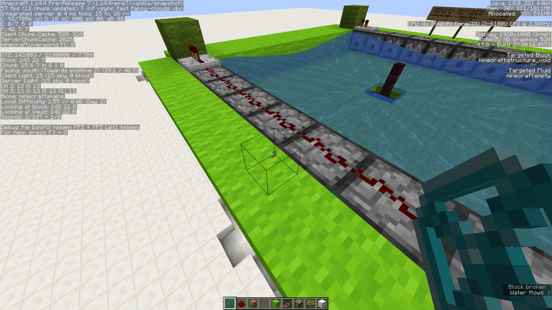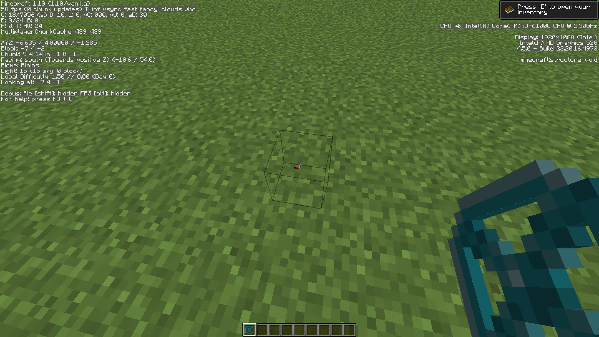 The appearance of the structure void block is an invisible cube that is smaller than the normal block, being about half of the size of a normal block.